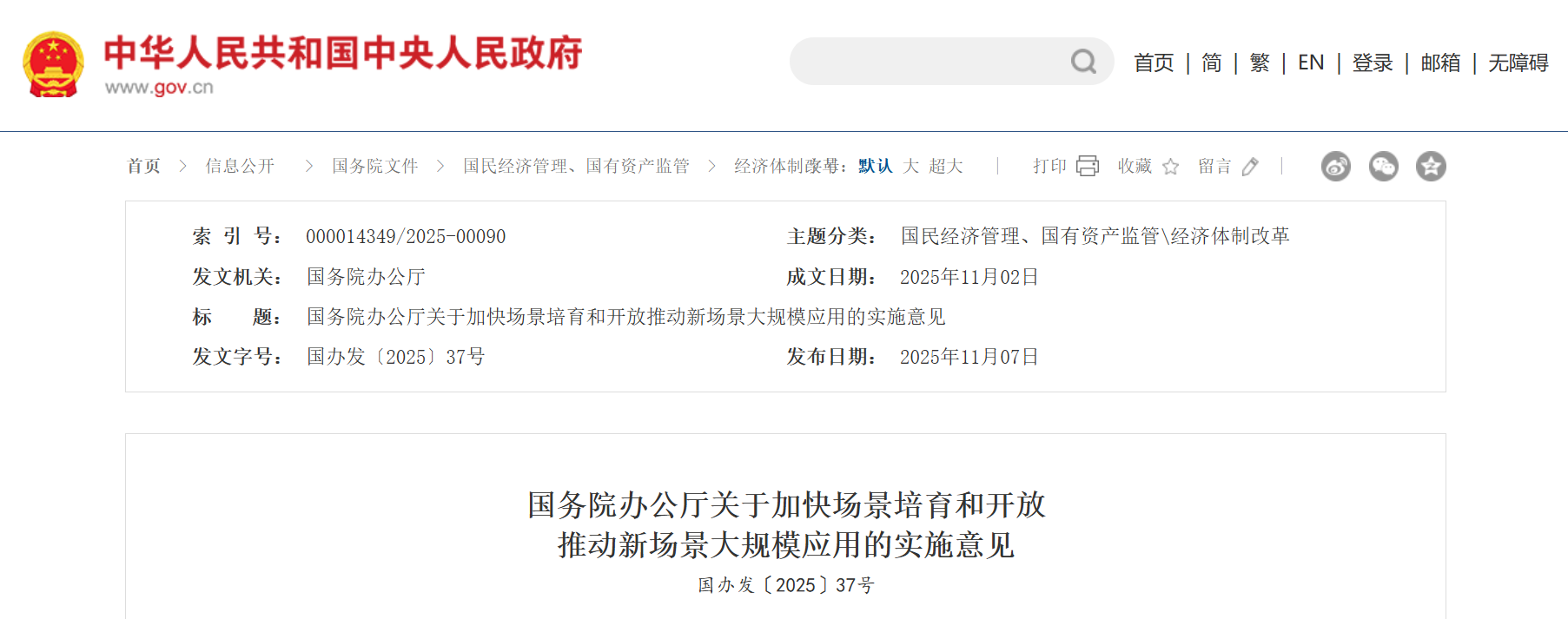 - 11-082025 《關(guān)于加快場景培育和開放推動(dòng)新場景大規(guī)模應(yīng)用的實(shí)施意見》發(fā)布